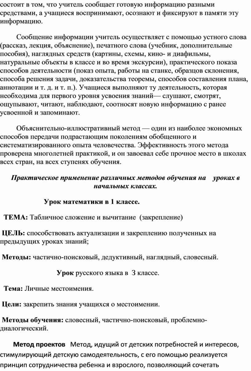 Практическое применение различных методов обучения на уроках в начальных классах.