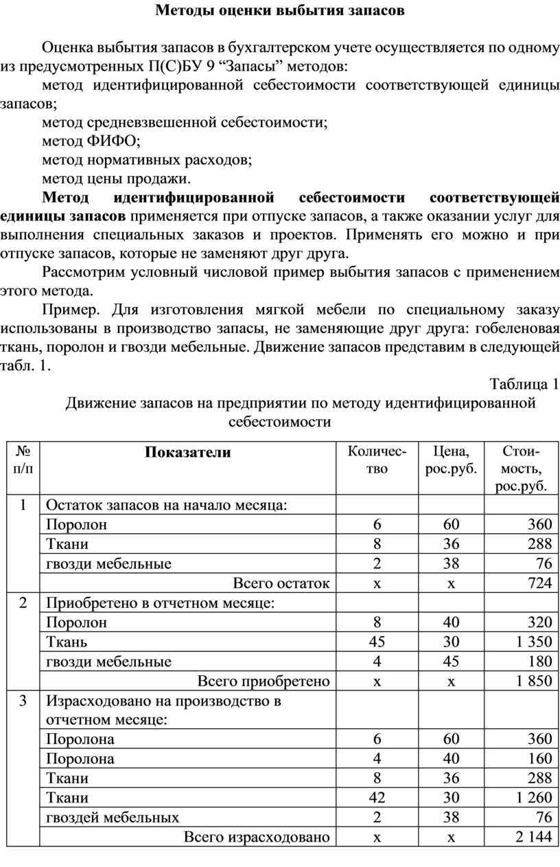 Методы оценки выбытия запасов