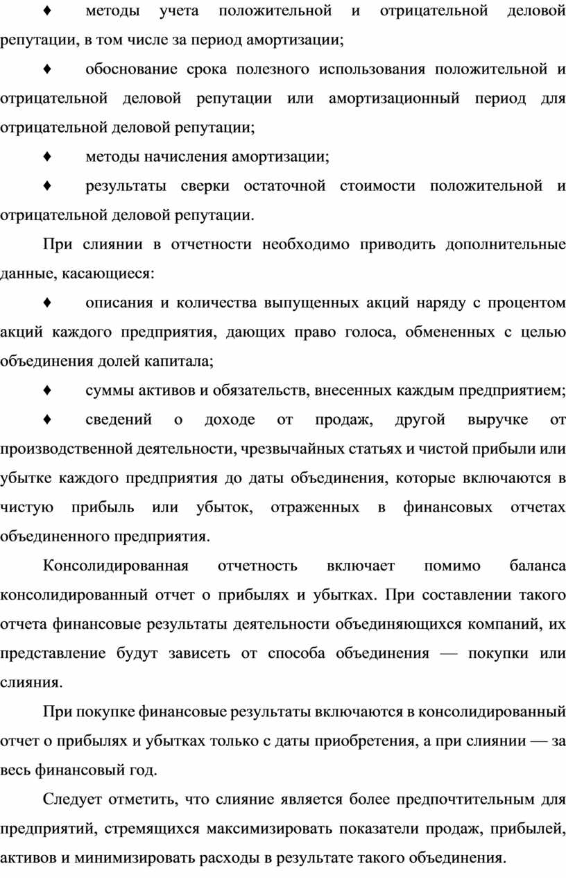 При слиянии в отчетности необходимо приводить дополнительные данные, касающиеся:
