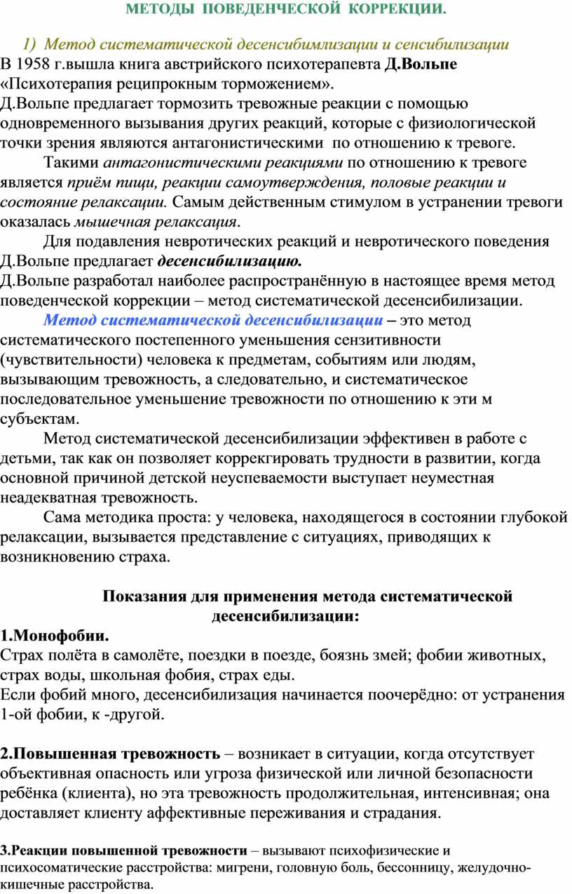 МЕТОДЫ ПОВЕДЕНЧЕСКОЙ КОРРЕКЦИИ.