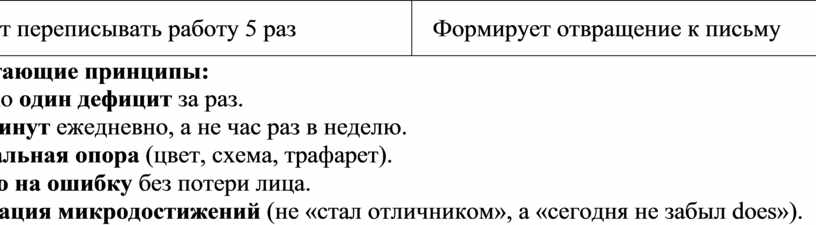 Формирует отвращение к письму |