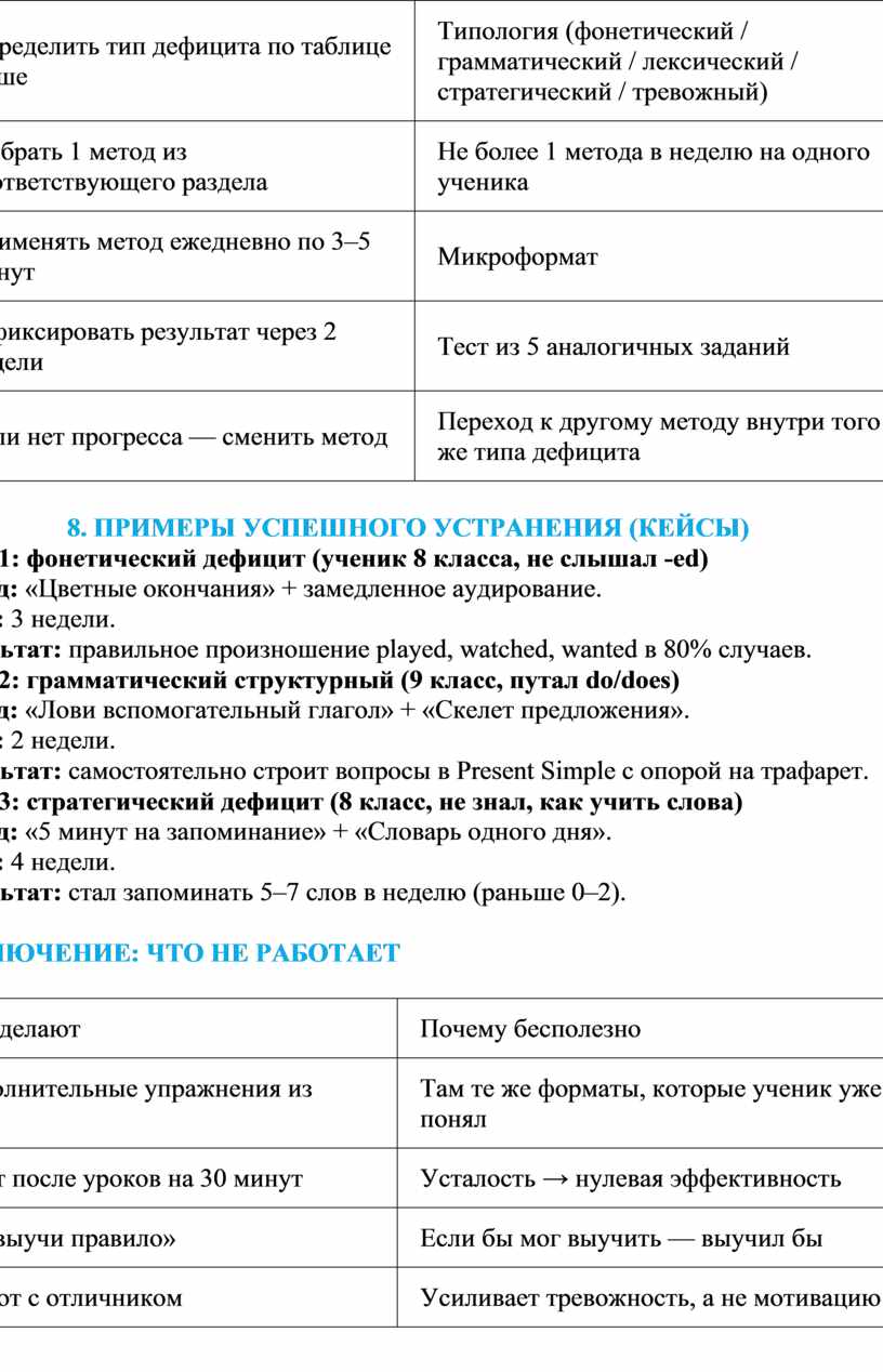 Кейс 1: фонетический дефицит (ученик 8 класса, не слышал -ed)