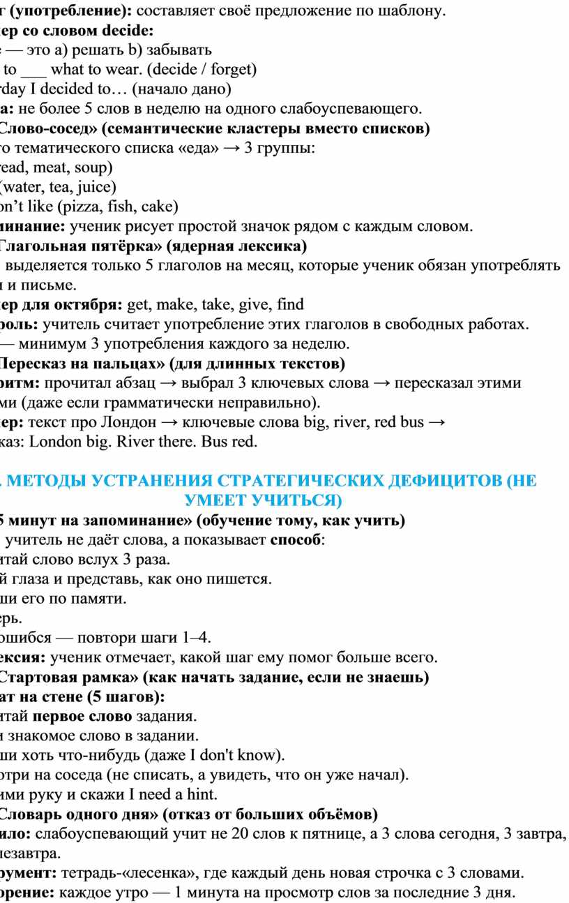 4. МЕТОДЫ УСТРАНЕНИЯ СТРАТЕГИЧЕСКИХ ДЕФИЦИТОВ (НЕ УМЕЕТ УЧИТЬСЯ)