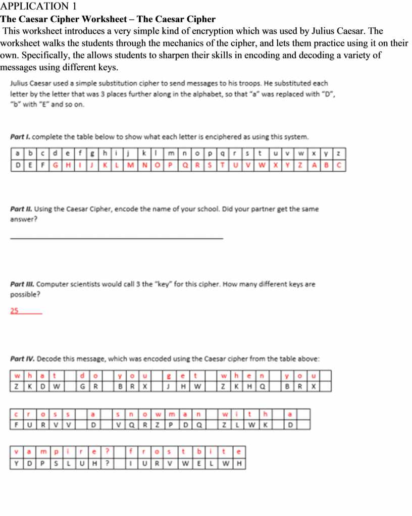 The Caesar Cipher Worksheet – The Caesar Cipher