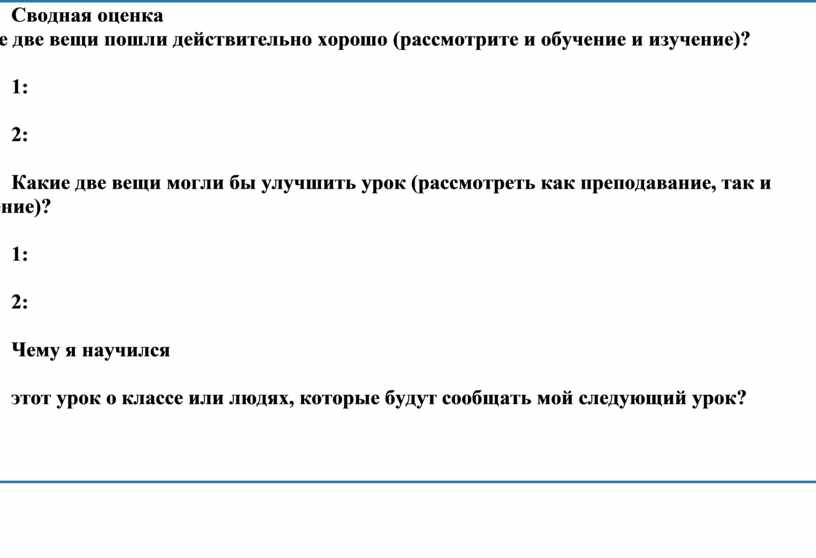 Какие две вещи могли бы улучшить урок (рассмотреть как преподавание, так и обучение)?