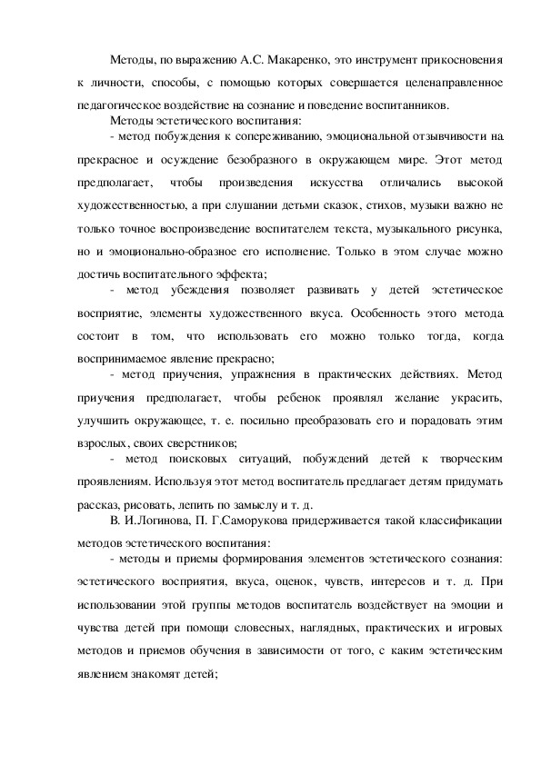 В данной работе, каждой группе задач эстетического воспитания соответствуют свои методы.