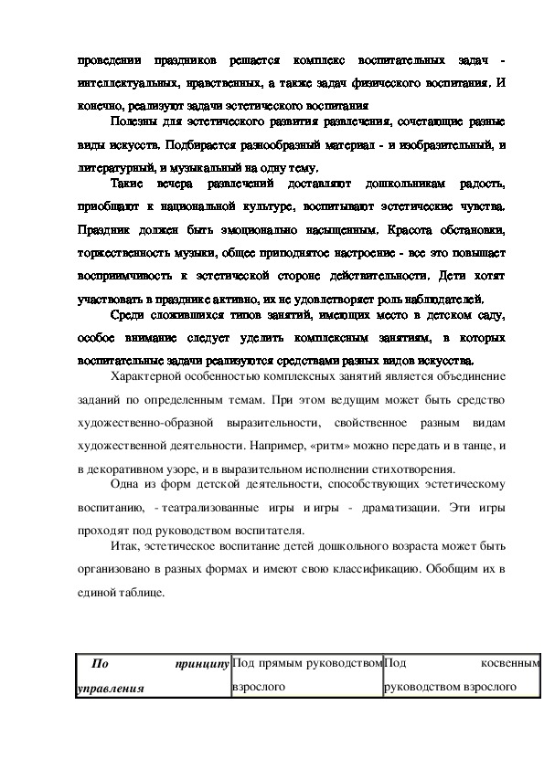 Итак, эстетическое воспитание детей дошкольного возраста может быть
