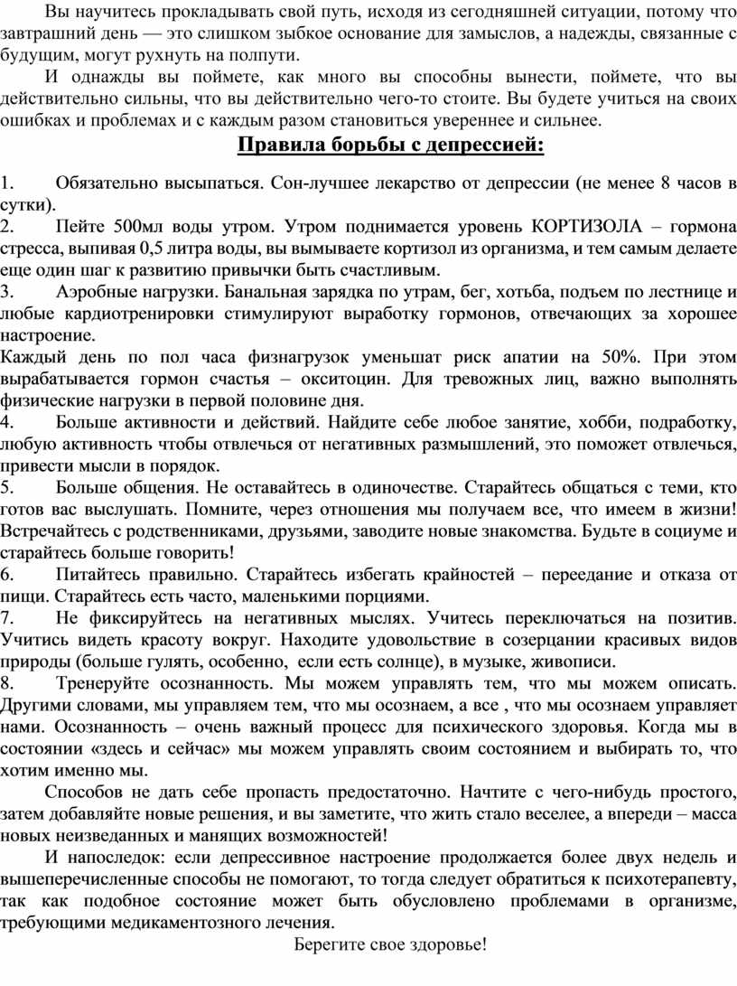 4. Выработать чувство уверенности, что депрессию можно победить.