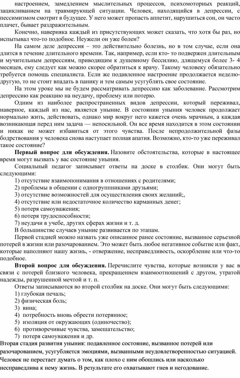 Первый вопрос для обсуждения. Назовите обстоятельства, которые в настоящее время могут вызвать у вас состояние уныния.