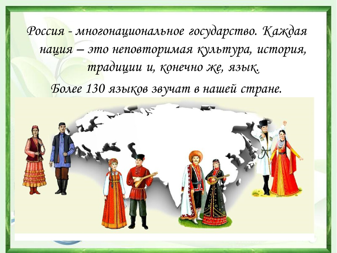 Россия - многонациональное государство. Каждая нация – это неповторимая культура, история, традиции и, конечно же, язык.