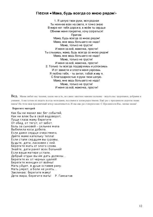 Вед. Мама, мамочка. Какое теплое, магическое слово, которым называют человека