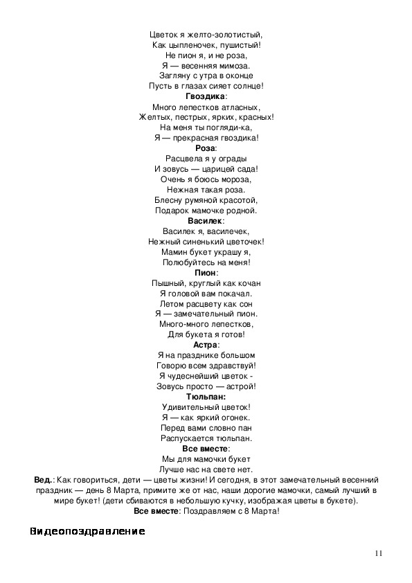 Вед.: Как говориться, дети — цветы жизни! И сегодня, в этот замечательный весенний