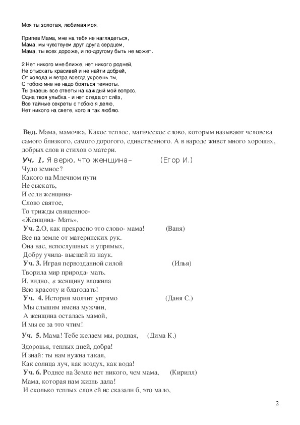 Уч. 2.О, как прекрасно это слово мама! (Ваня)