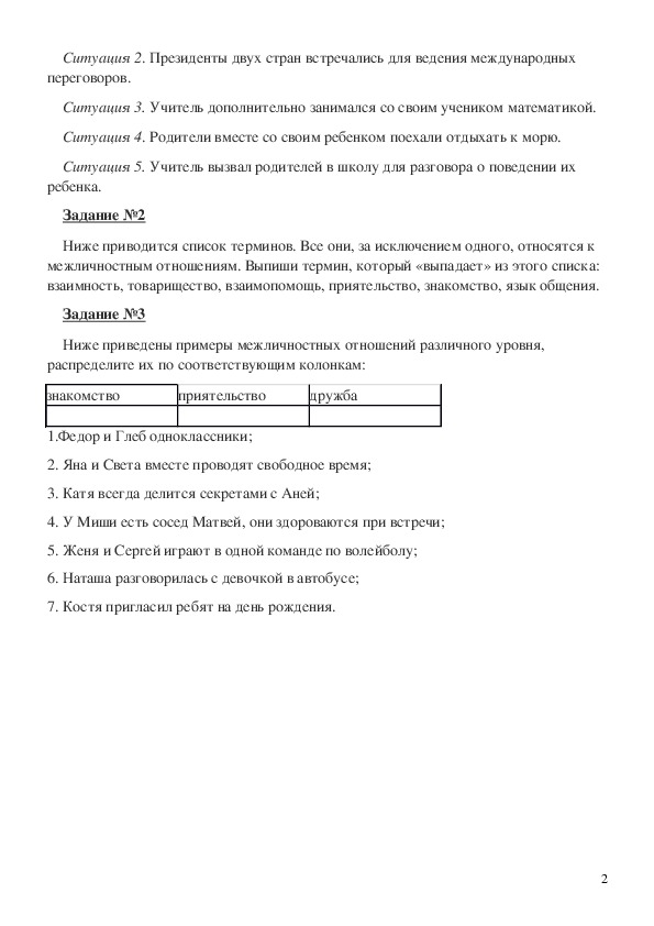 Ниже приведены примеры межличностных отношений различного уровня,