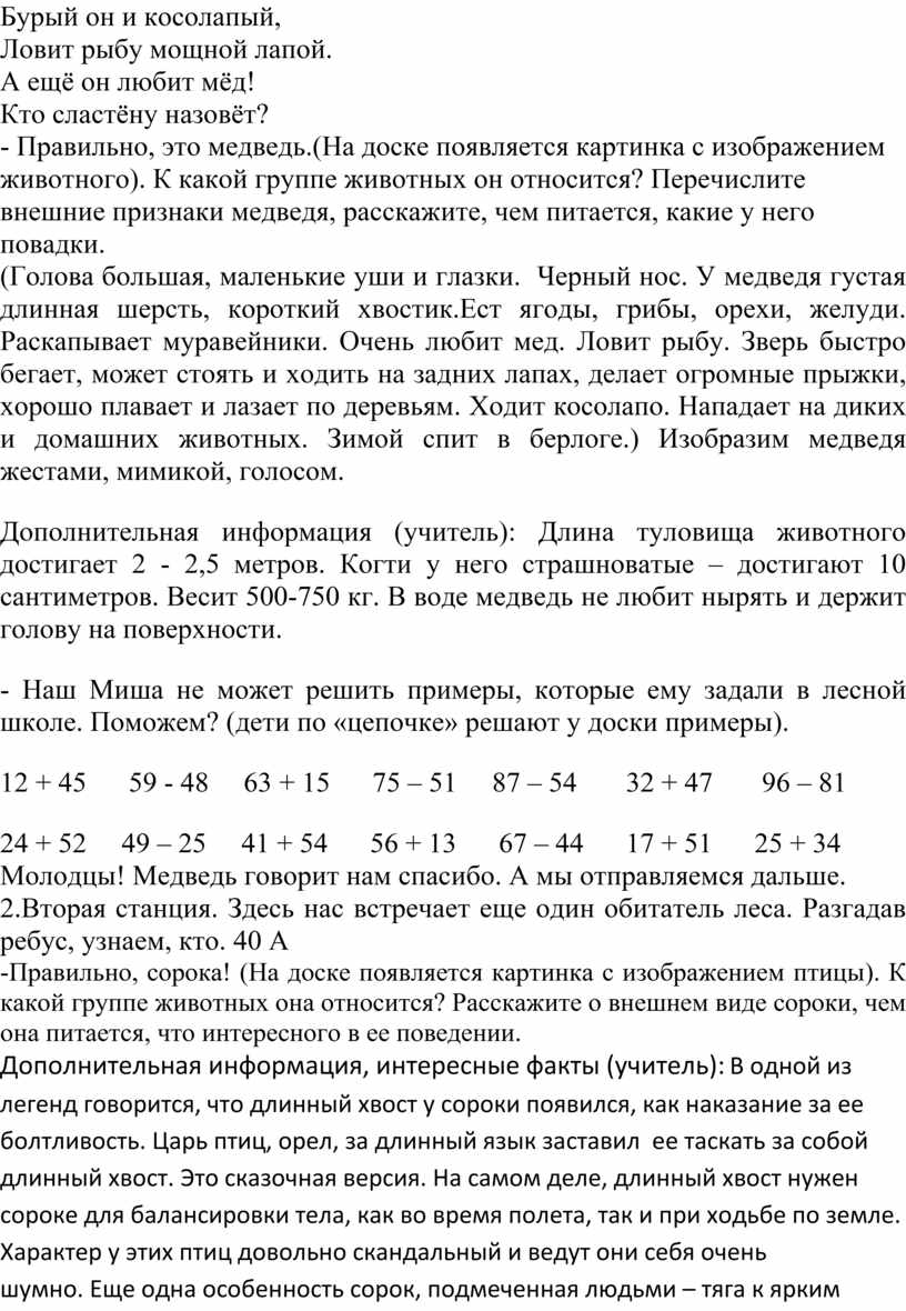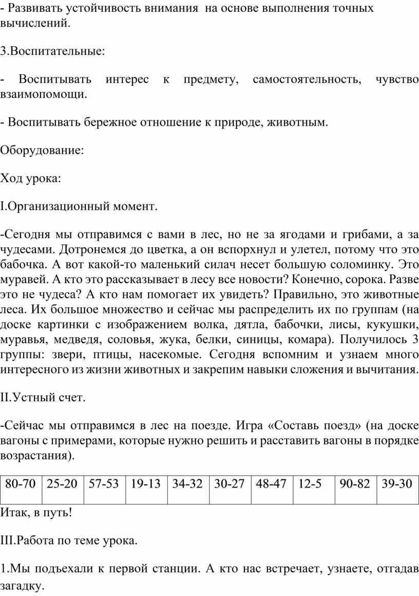 На уроках обучающиеся выполняют математические действия, используя различные способы задания и описания алгоритмов, чередуя эту работу с получением информации в форме беседы о животных, о событиях, о родном крае. Это дает возможность усилить воспитательный эффект, осуществить межпредметные связи, повысить познавательную активность детей.