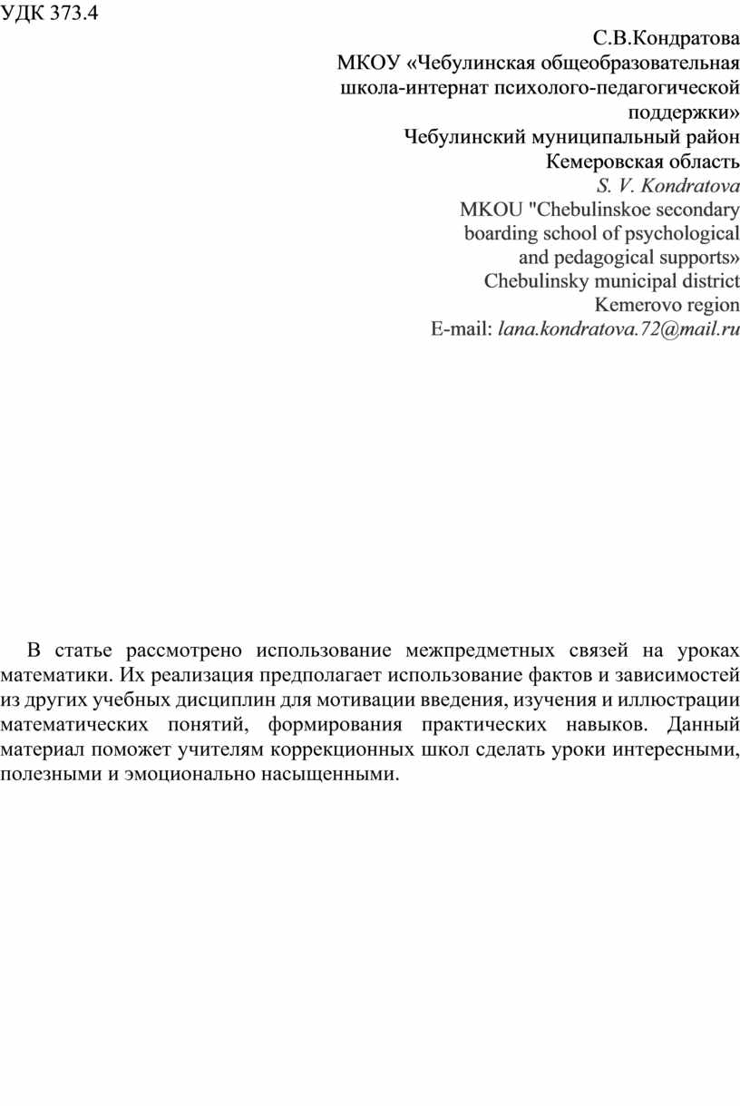 E-mail: lana.kondratova.72@mail.ru