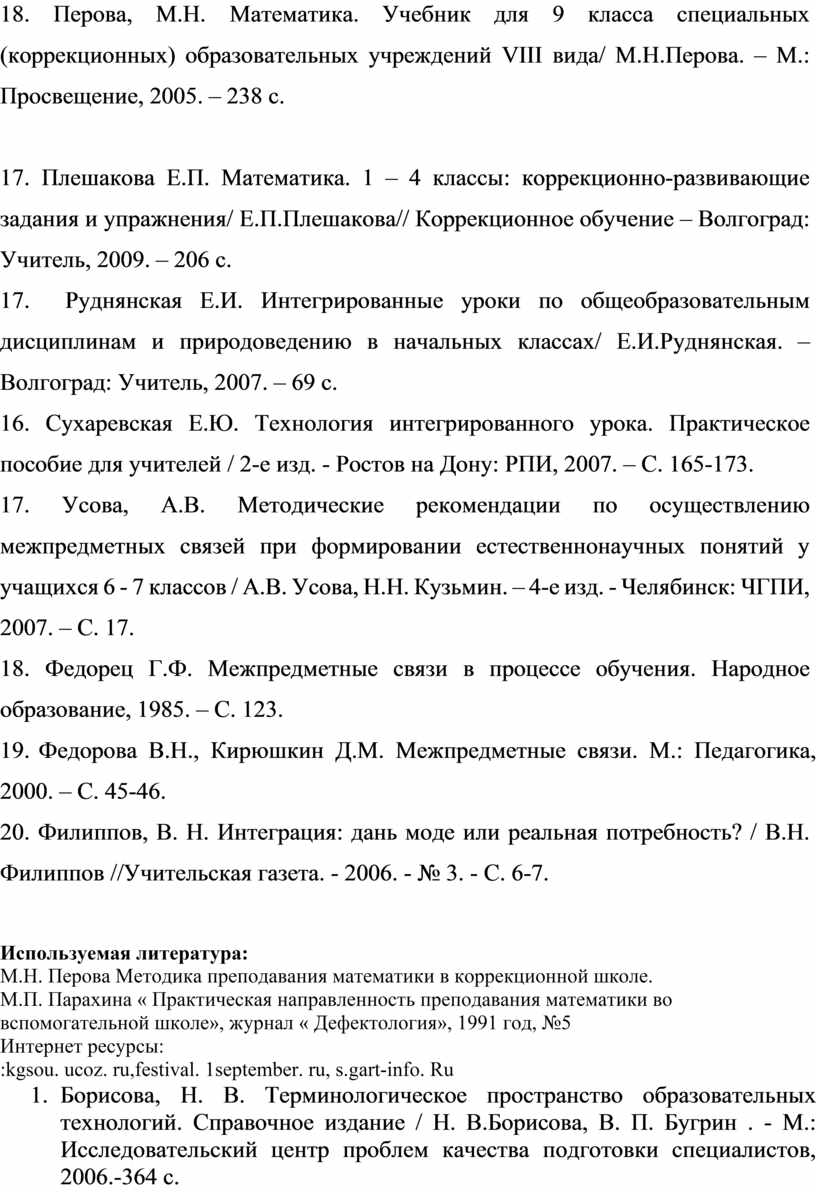 Межпредметная интеграция на уроках математики в коррекционной школе VIII вида
