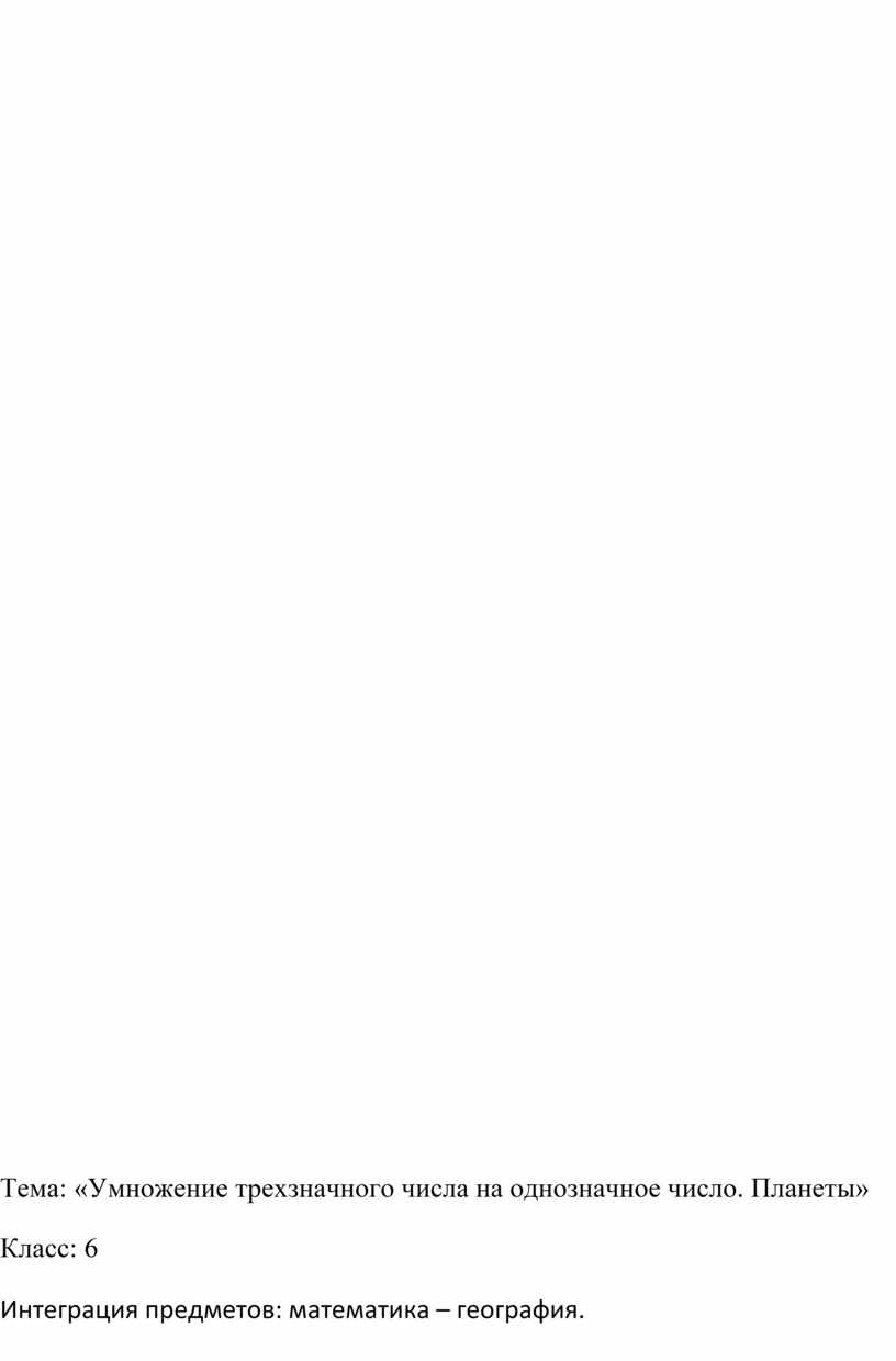 Тема: «Умножение трехзначного числа на однозначное число. Планеты»