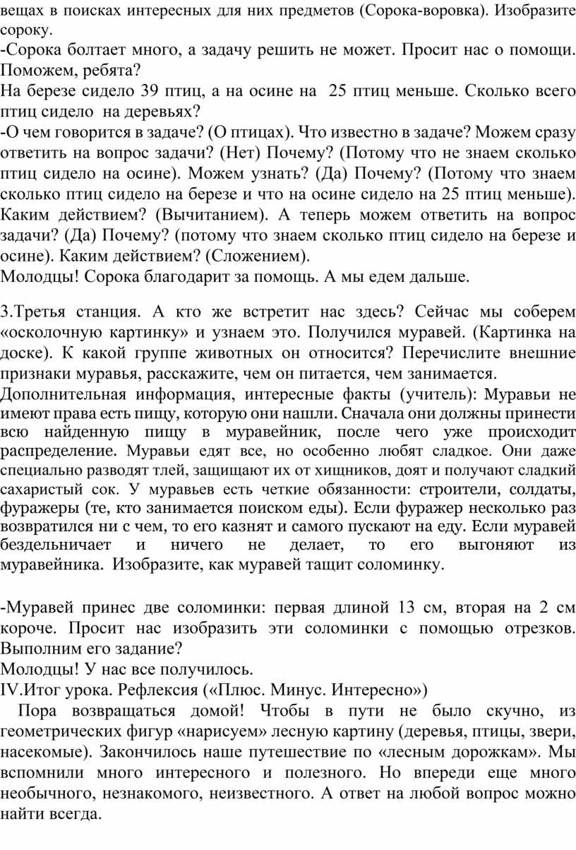 3.Третья станция. А кто же встретит нас здесь? Сейчас мы соберем «осколочную картинку» и узнаем это. Получился муравей. (Картинка на доске). К какой группе животных он относится? Перечислите внешние признаки муравья, расскажите, чем он питается, чем занимается.