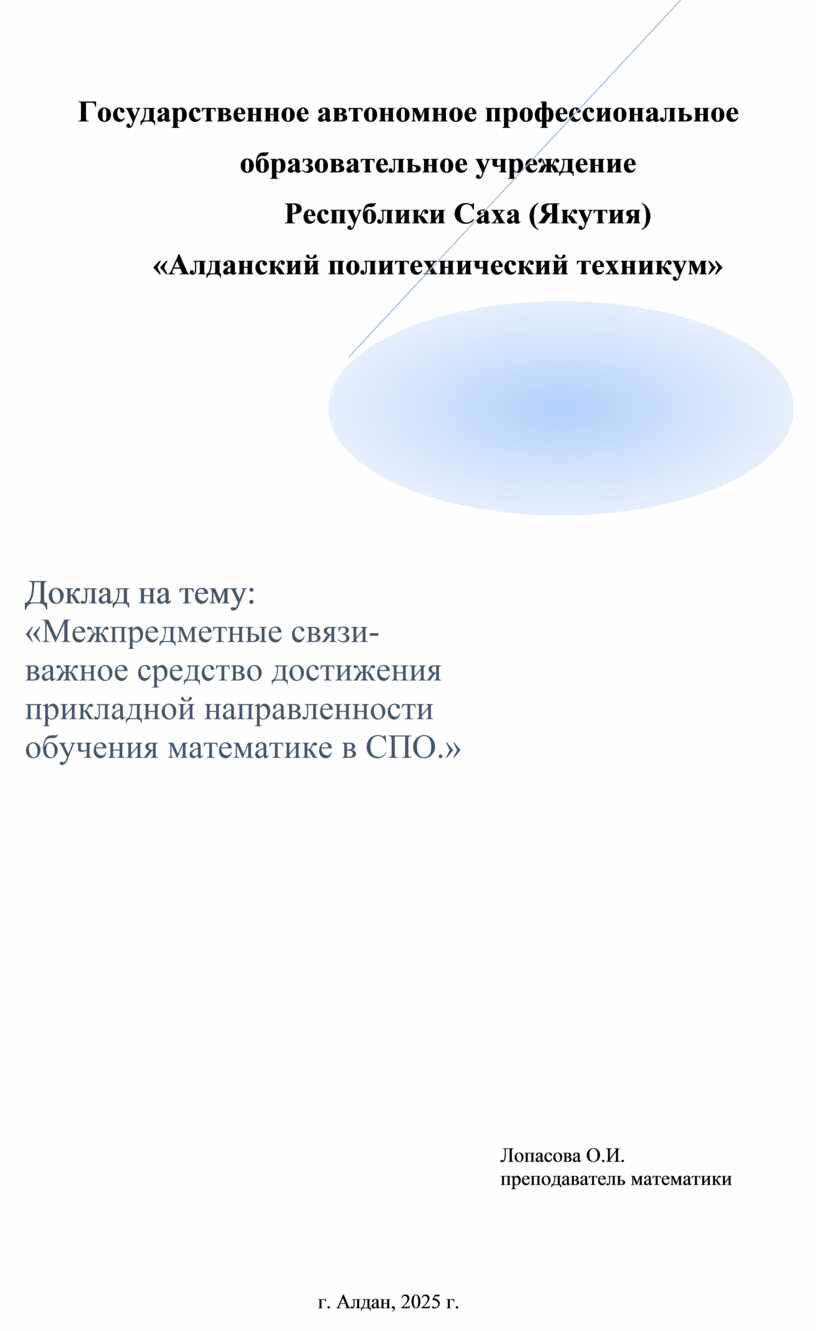 Доклад на тему: «Межпредметные связи- важное средство достижения прикладной направленности обучения математике в СПО.»