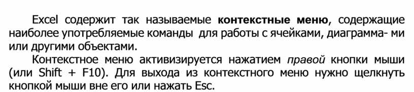 Контекстное меню активизируется нажатием правой кнопки мыши (или Shift + F10). Для выхода из контекстного меню нужно щелкнуть кнопкой мыши вне его или нажать Esc.