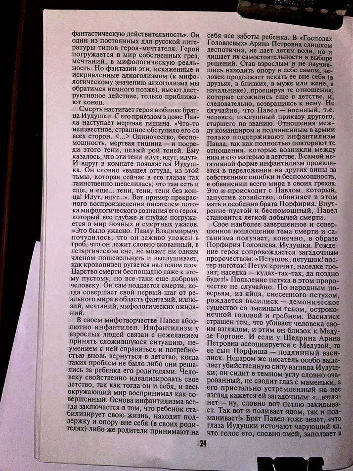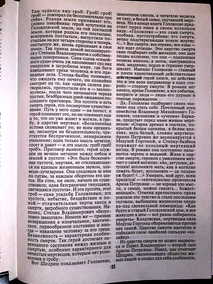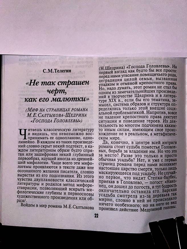 метод мифореставрации на примере романа Салтыкова (Щедрина) "Господа Головлевы"