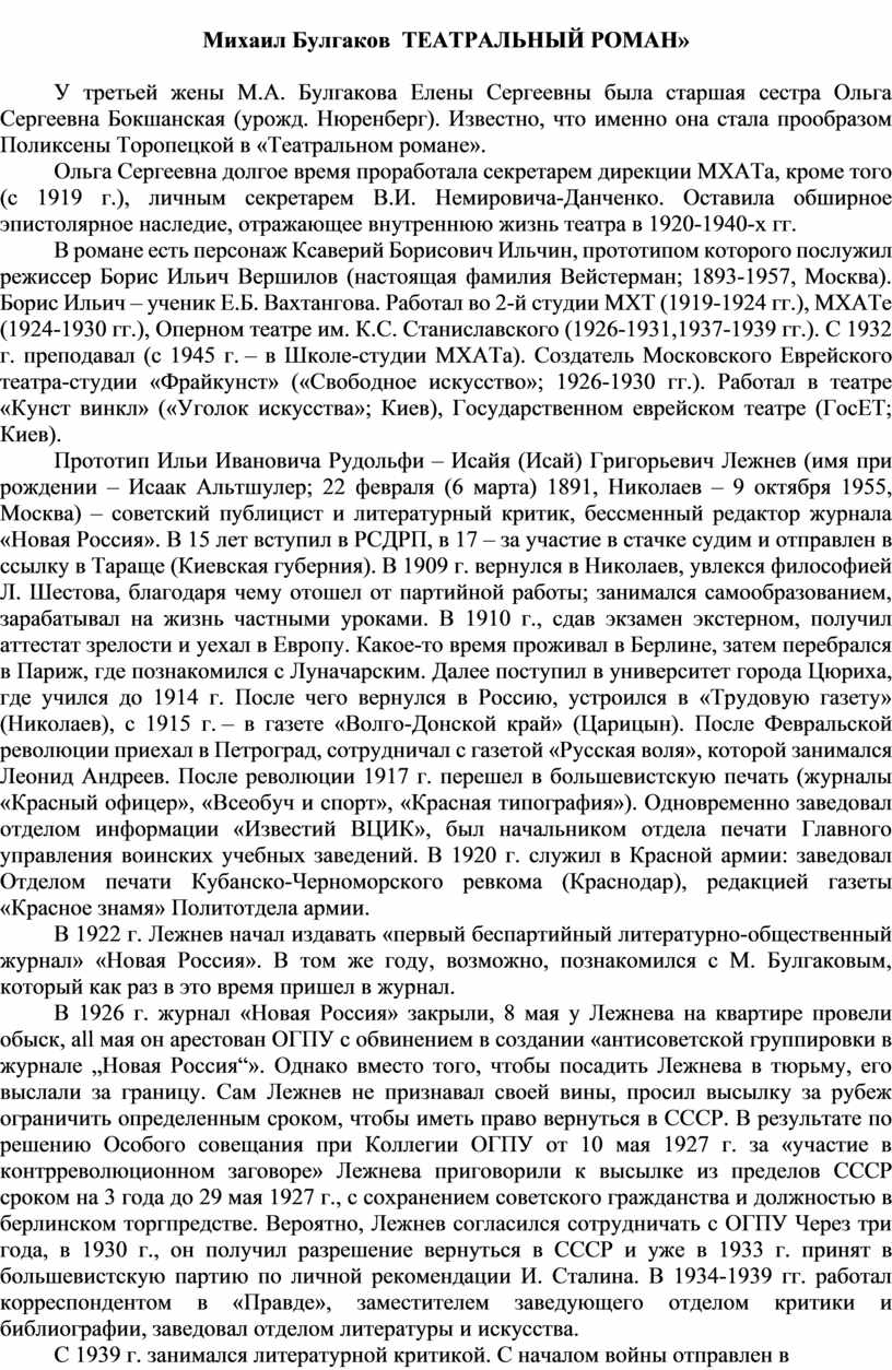 У третьей жены М.А. Булгакова Елены Сергеевны была старшая сестра Ольга Сергеевна Бокшанская (урожд. Нюренберг). Известно, что именно она стала прообразом Поликсены Торопецкой в «Театральном романе».