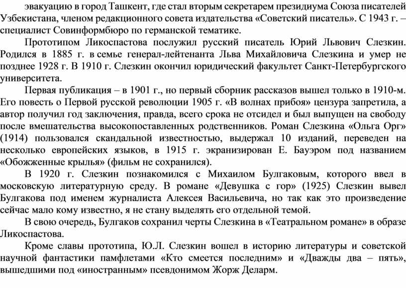 В свою очередь, Булгаков сохранил черты Слезкина в «Театральном романе» в образе Ликоспастова.
