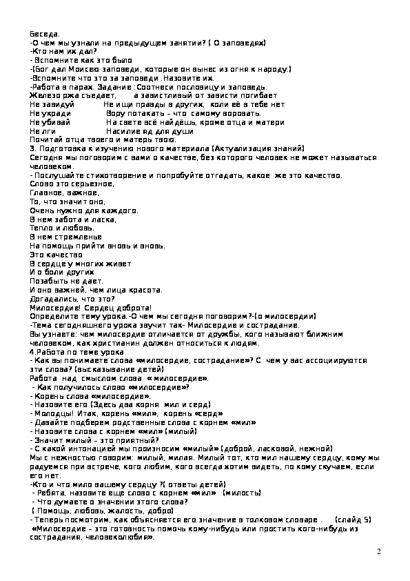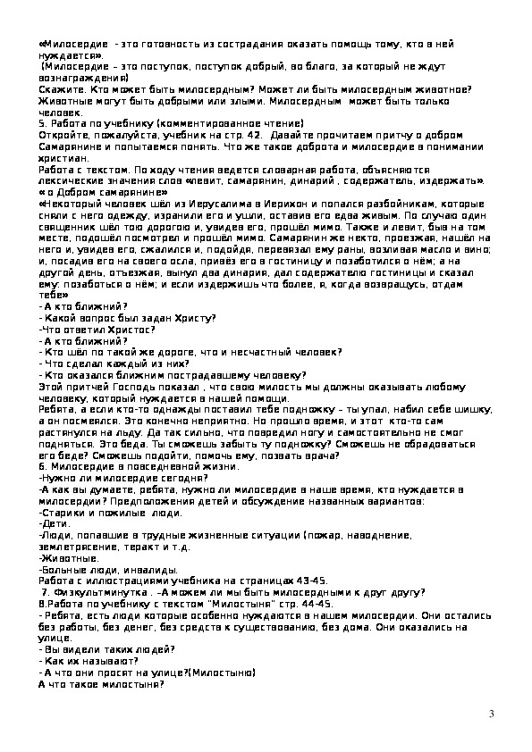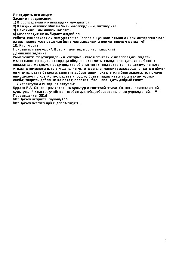 1)-формировать осмысление понятия “милосердие и сострадание” как основу отношений между людьми.