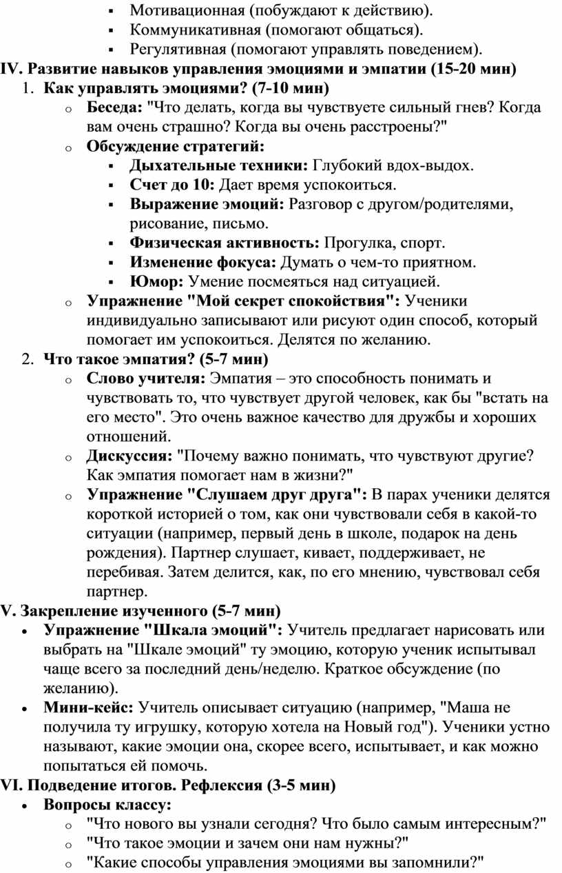 IV. Развитие навыков управления эмоциями и эмпатии (15-20 мин)