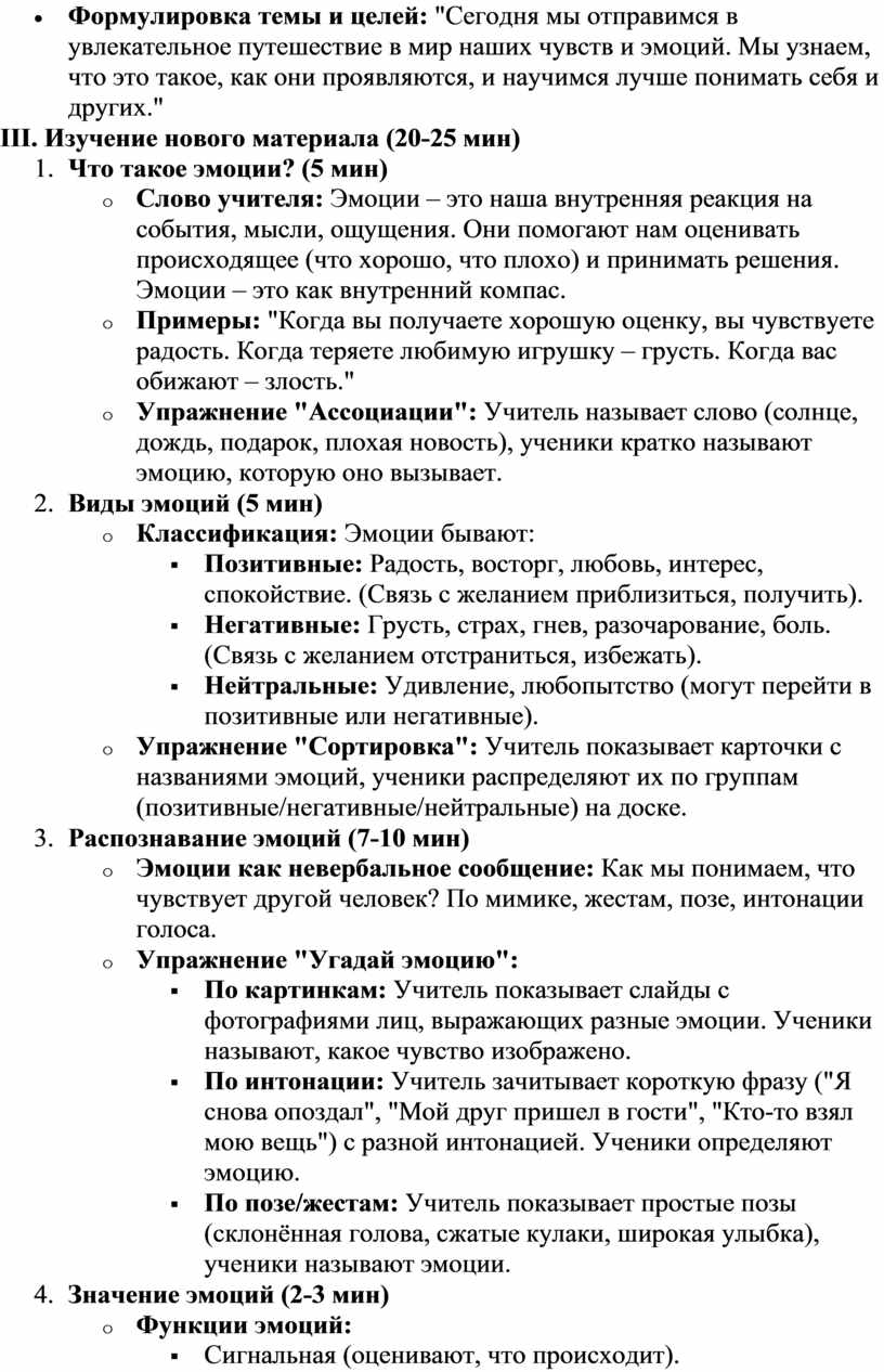 Конспект урока: "Мир эмоций: понимаем себя и других"