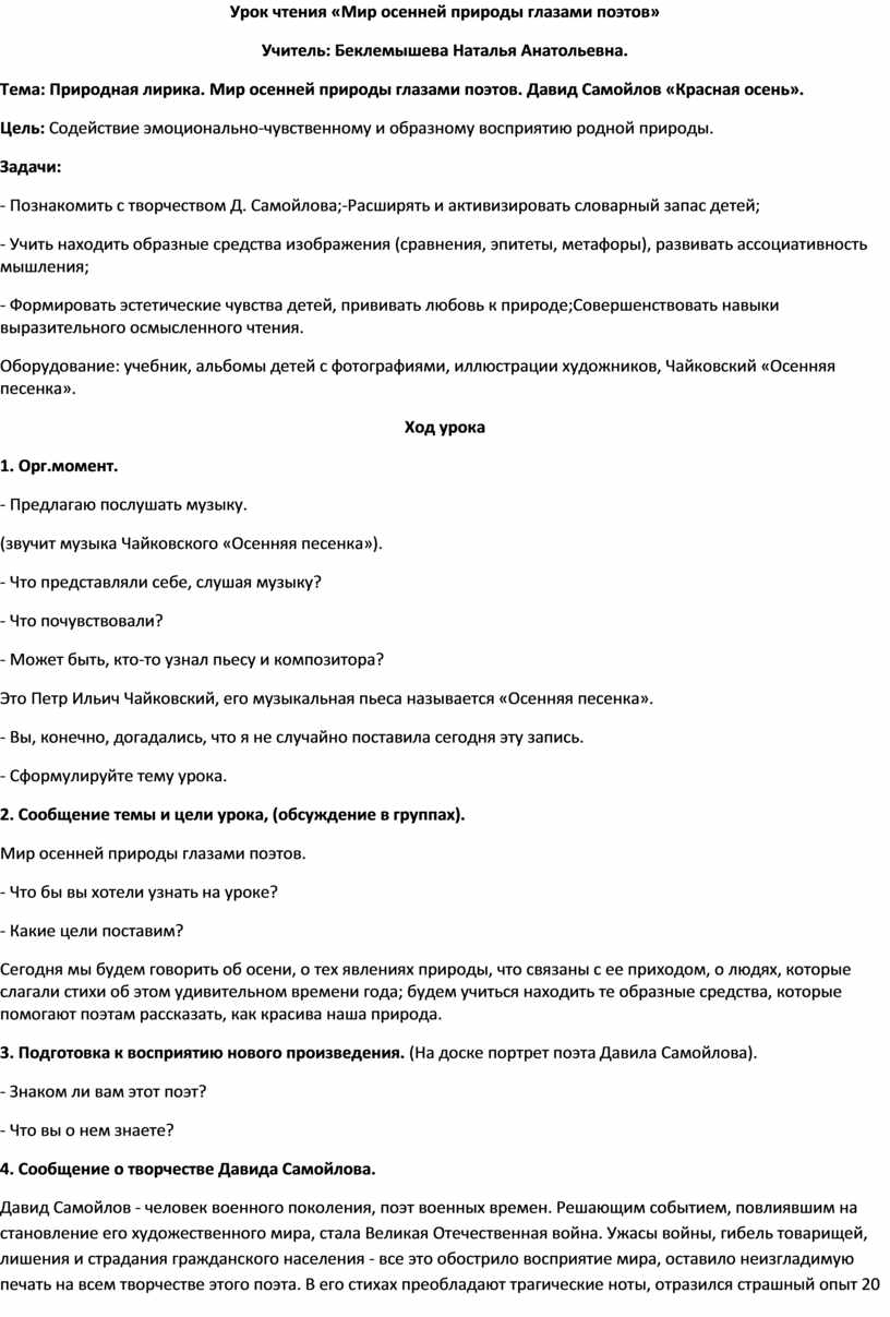 Тема: Природная лирика. Мир осенней природы глазами поэтов. Давид Самойлов «Красная осень».