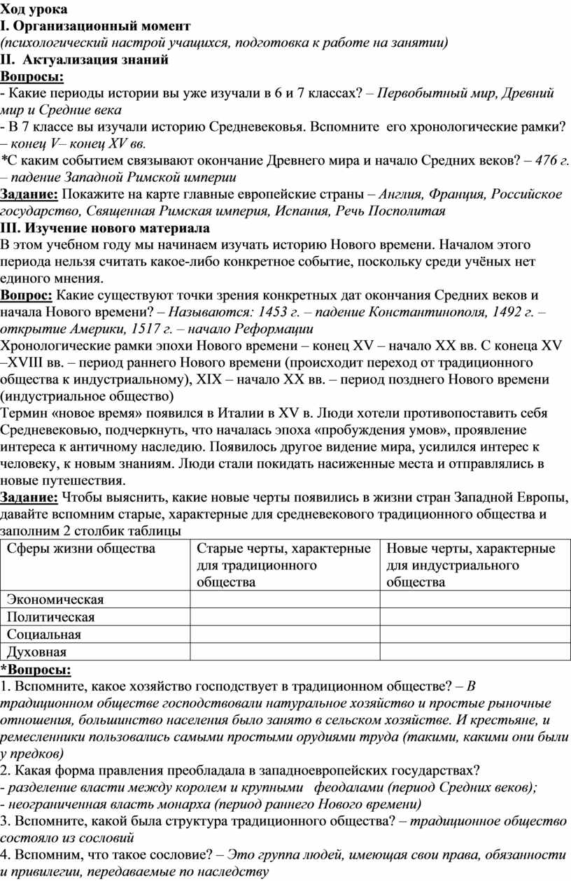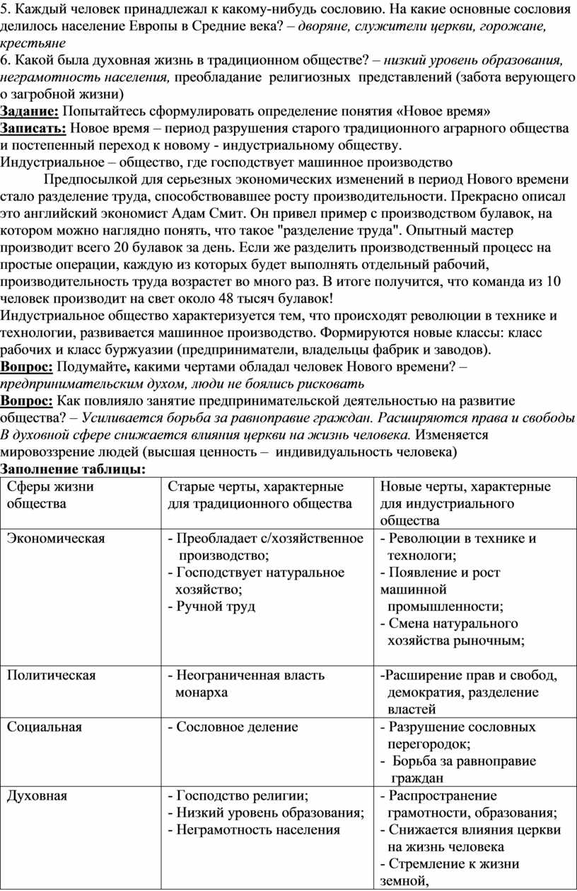2. Выделить черты старого Средневекового (традиционного) общества и Нового (индустриального) общества;