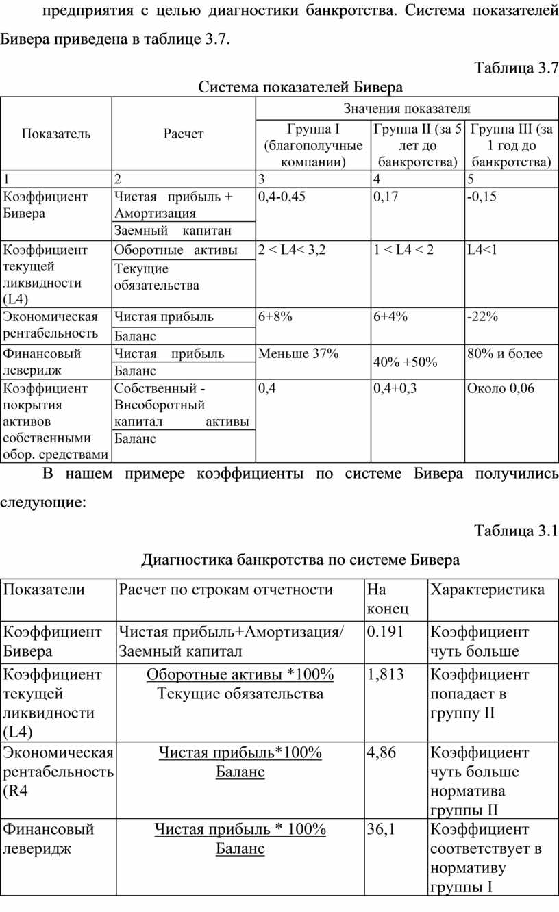 Диагностика банкротства по системе Бивера