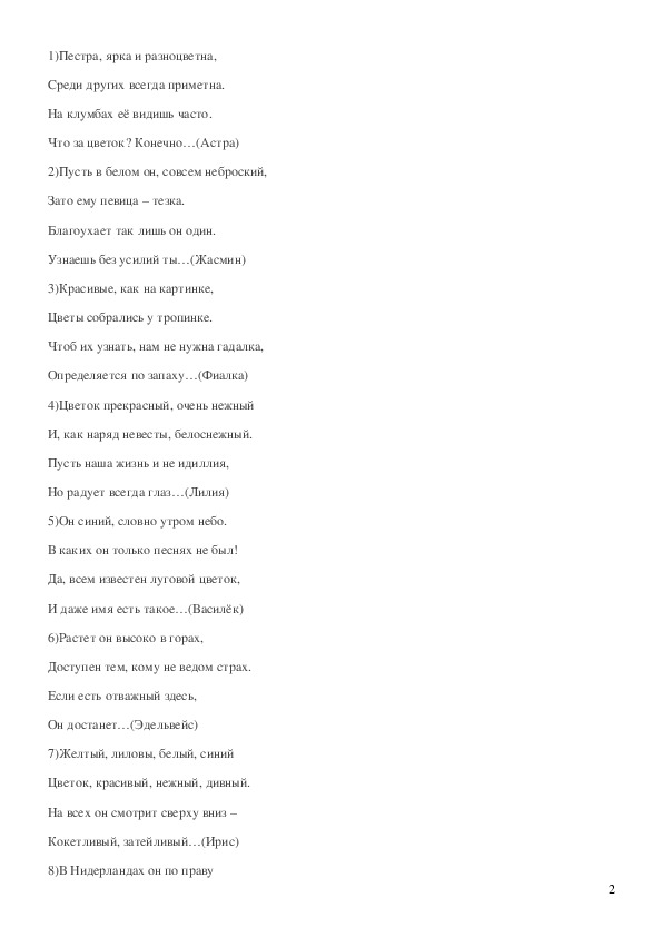 В этом конкурсе необходимо закончить стихотворение названием цветка.1)Пестра, ярка и разноцветна,
