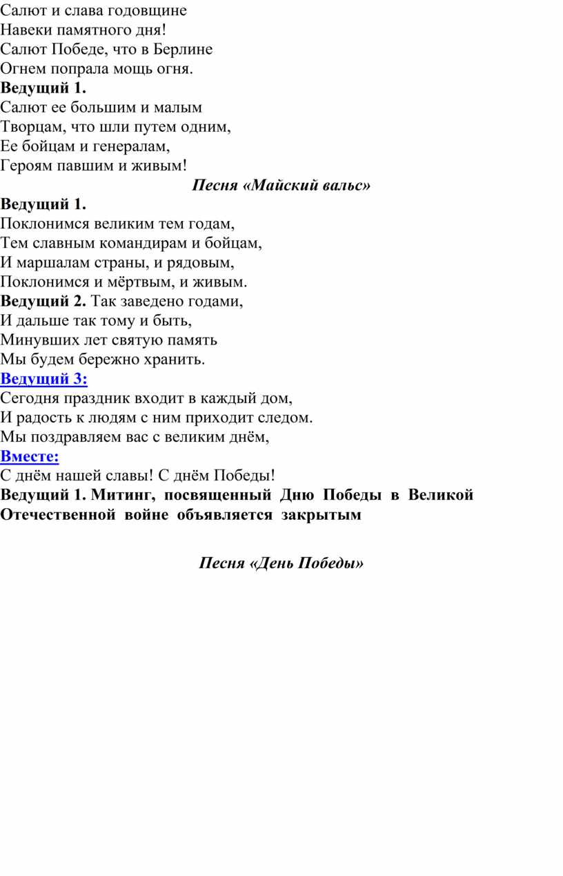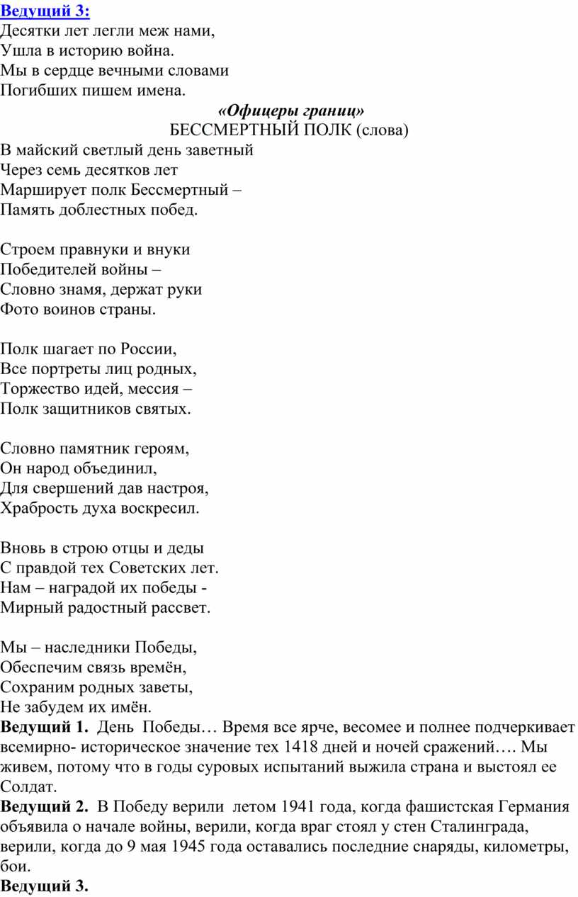 Ведущий 3. Сегодня великий праздник - День Победы! Вспомним всех...