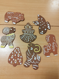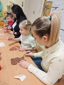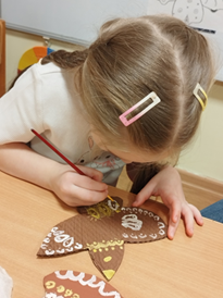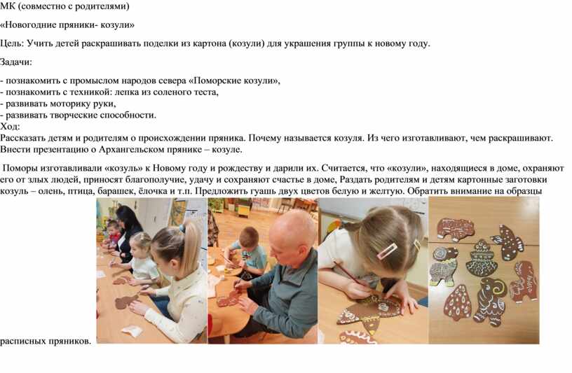 Цель: Учить детей раскрашивать поделки из картона (козули) для украшения группы к новому году.