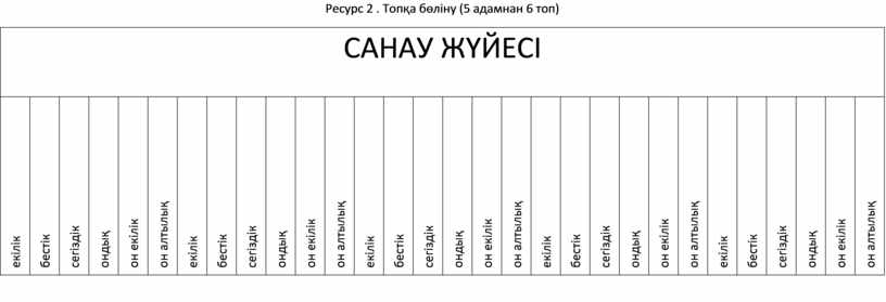 Ресурс 2 . Топқа бөліну (5 адамнан 6 топ)