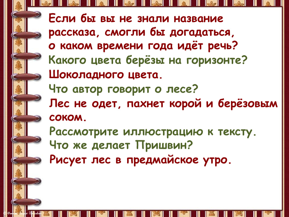 Прочитайте рассказ М. М. Пришвина «Предмайское утро» с. 102