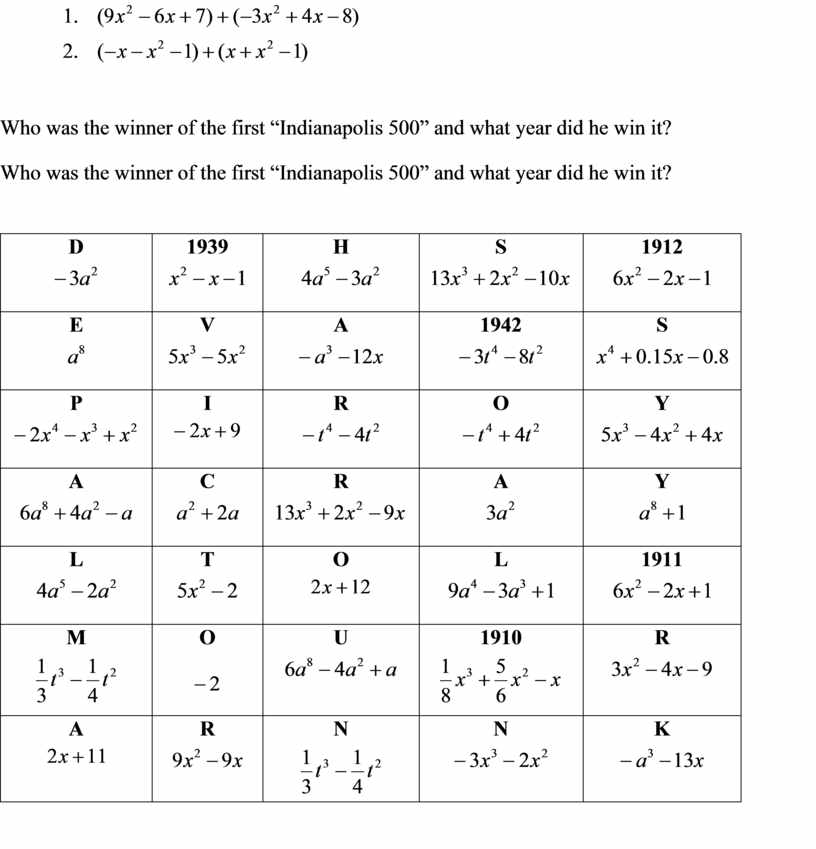 Who was the winner of the first “Indianapolis 500” and what year did he win it?