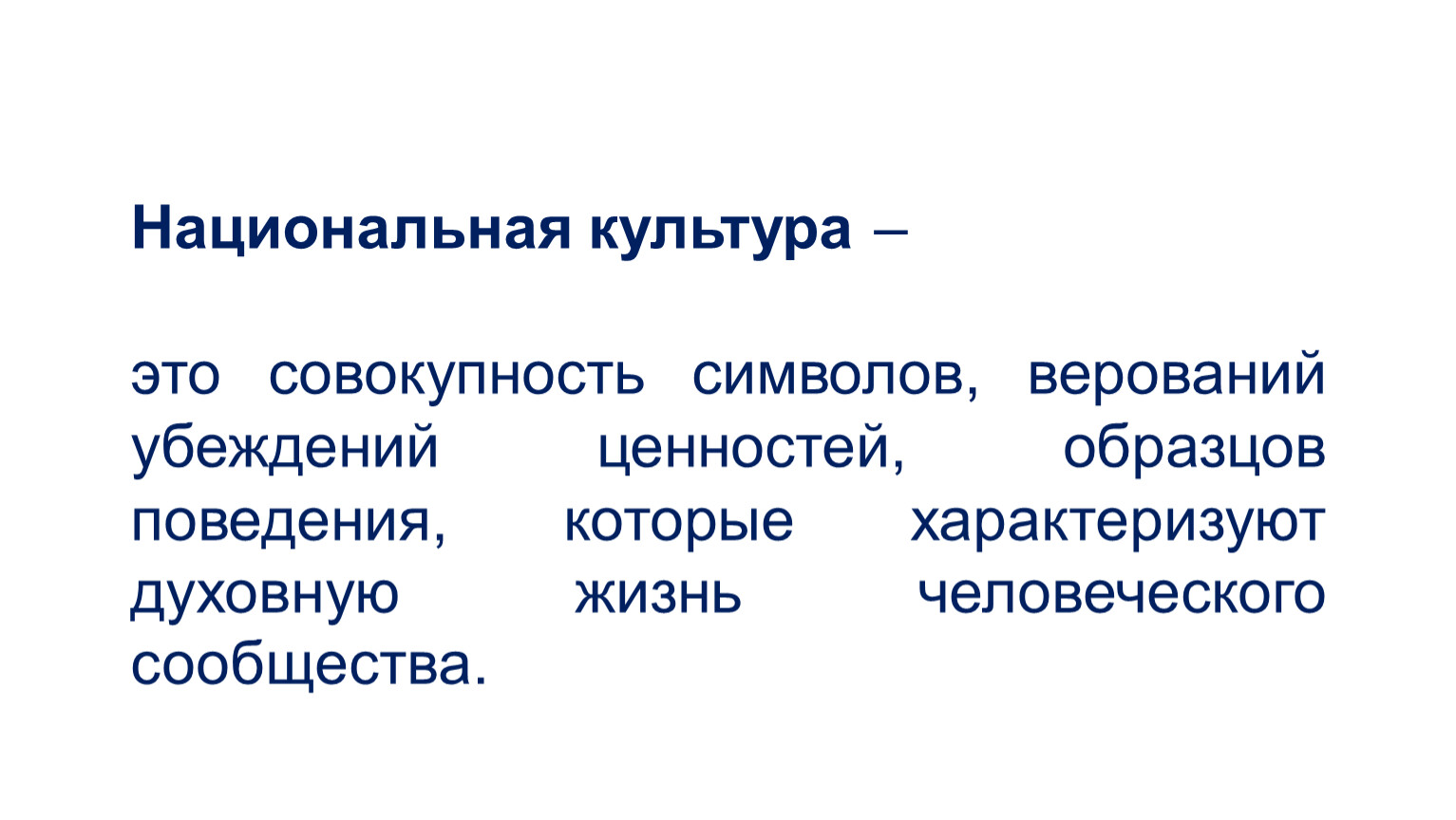 это совокупность символов, верований убеждений ценностей, образцов поведения, которые характеризуют духовную жизнь человеческого сообщества.