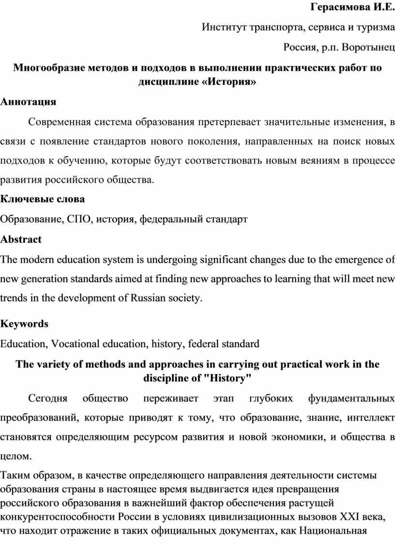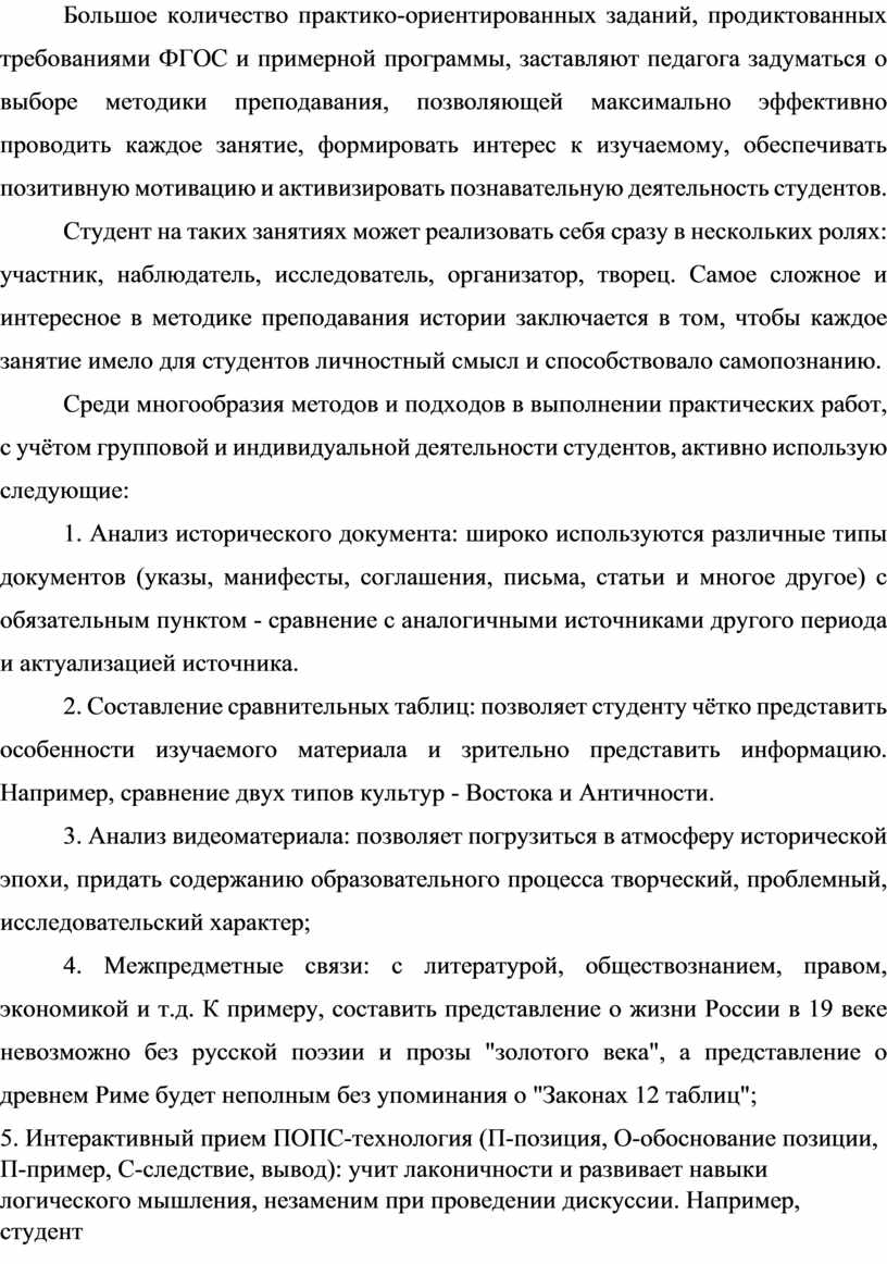 Многообразие методов и подходов в выполнении практических работ по дисциплине «История»
