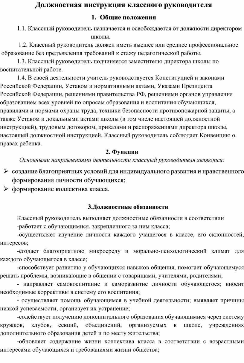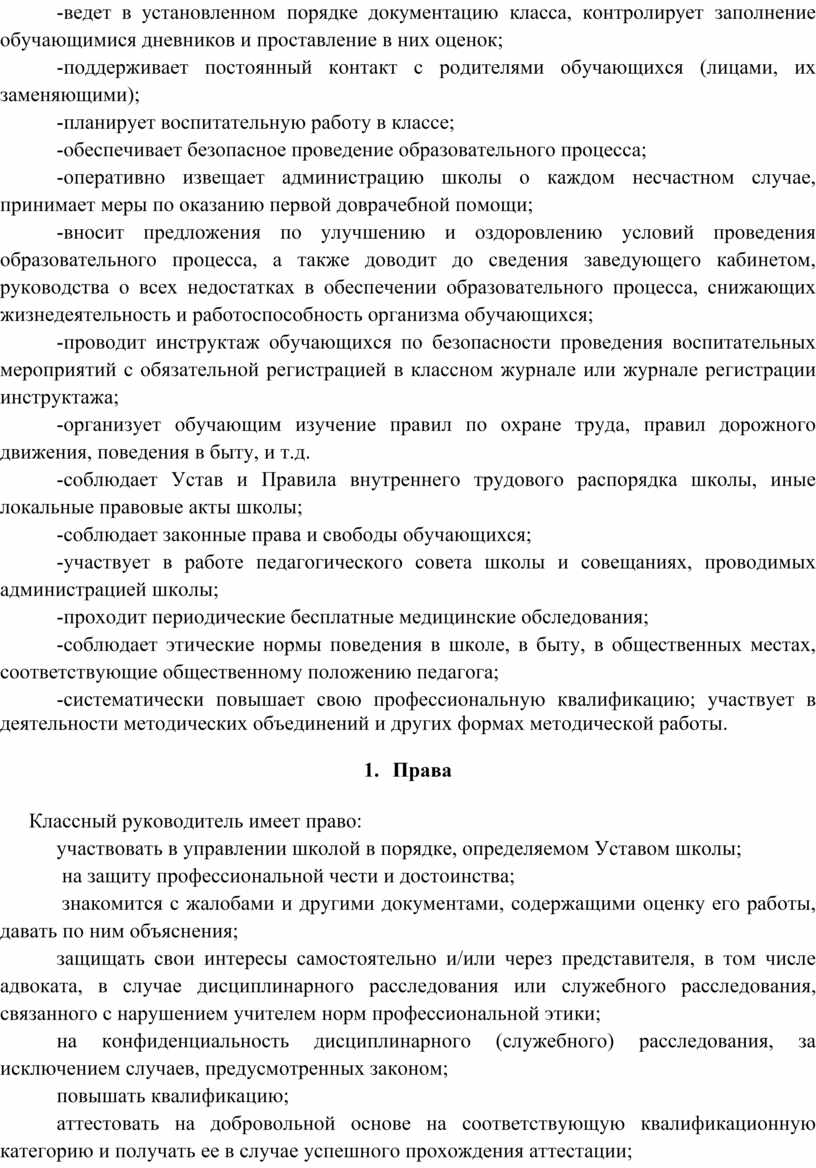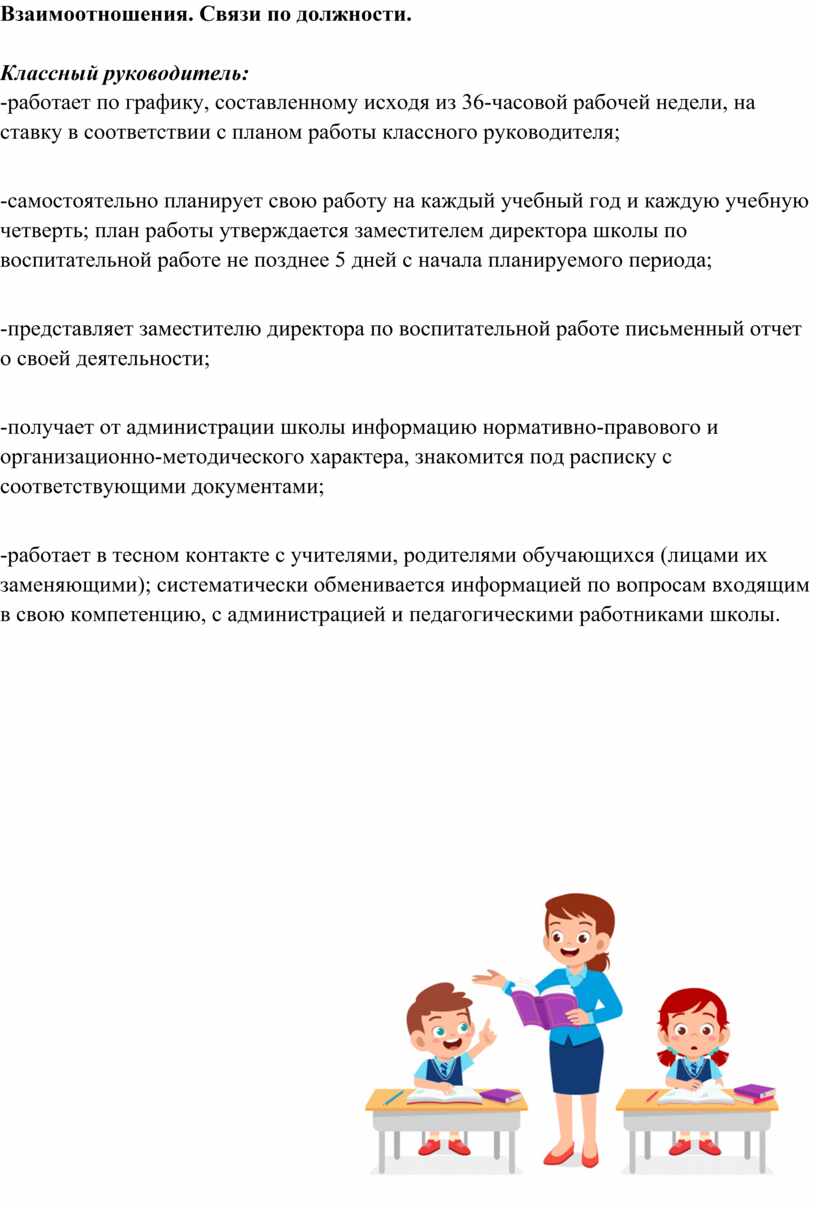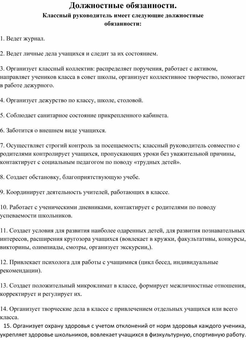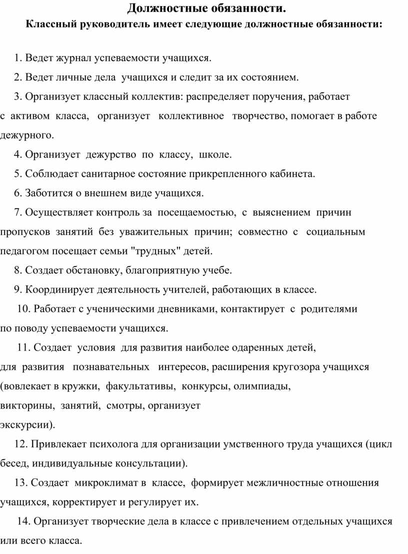 Классный руководитель имеет следующие должностные