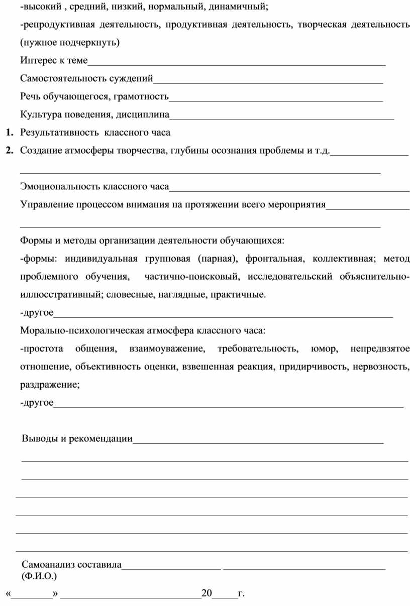Самоанализ составила___________________ _______________________________