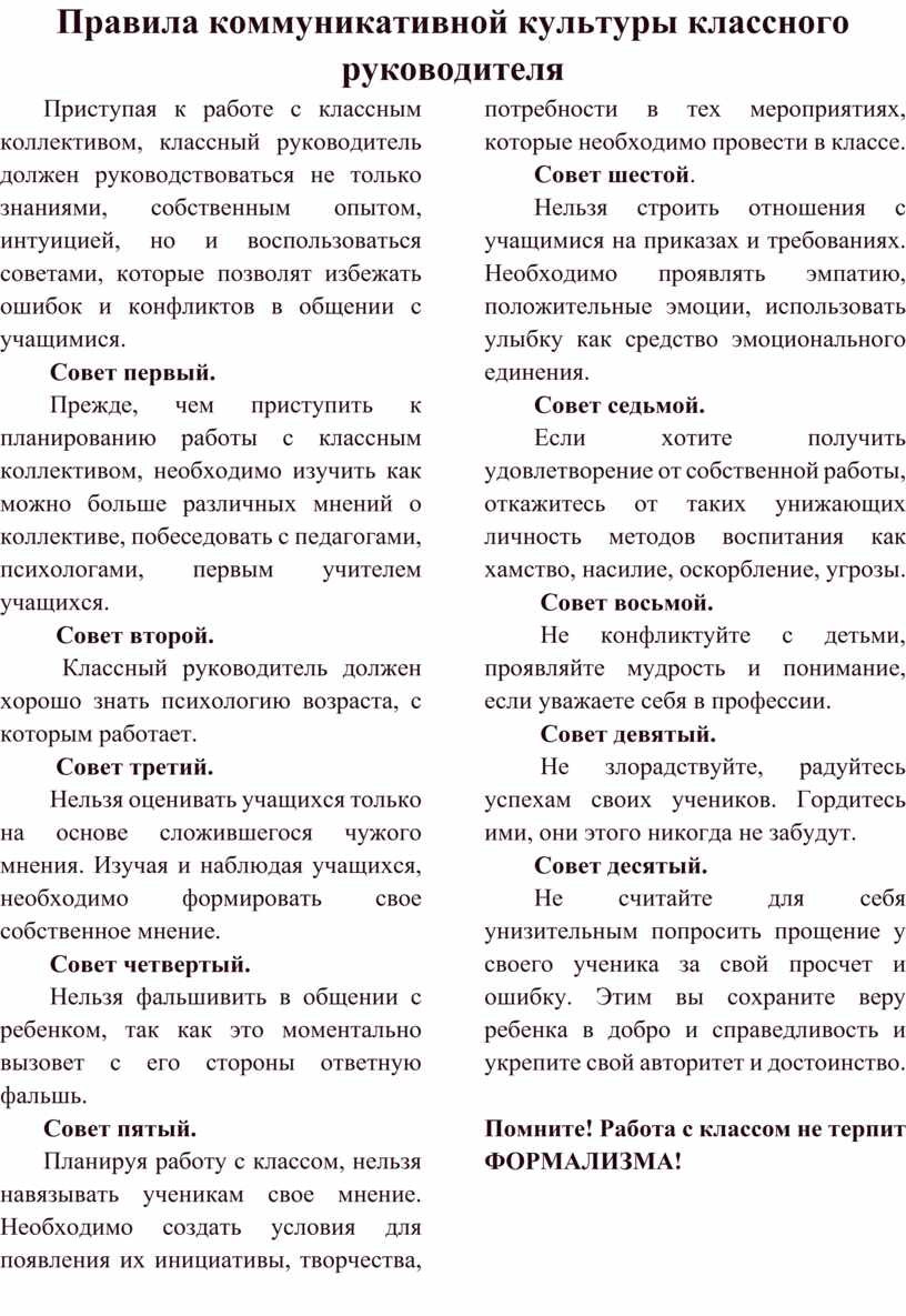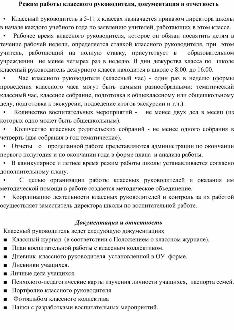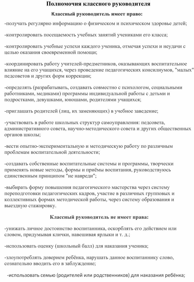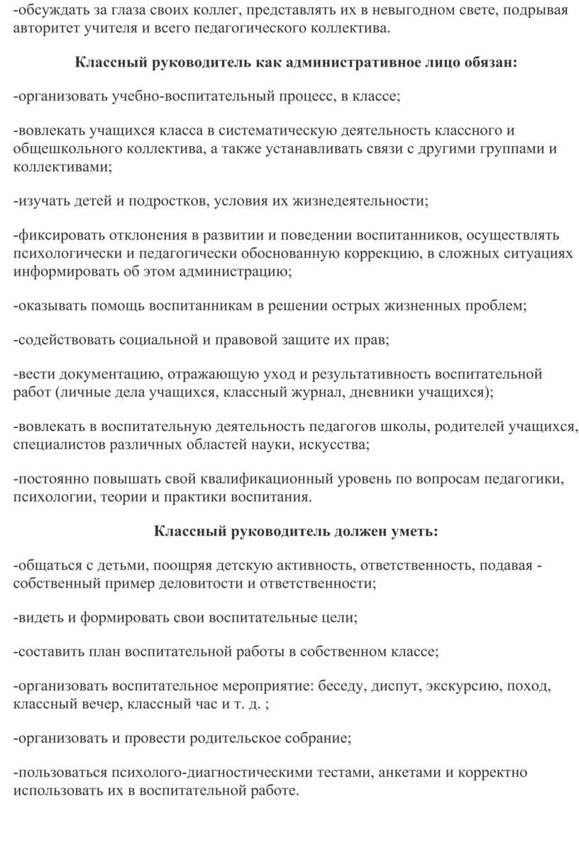 необходимо знать классному руководителю: