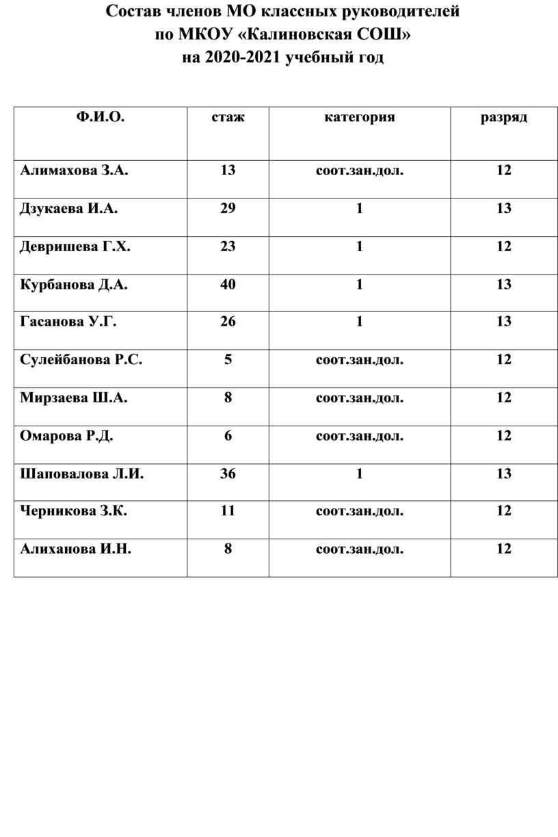 - список членов МО;