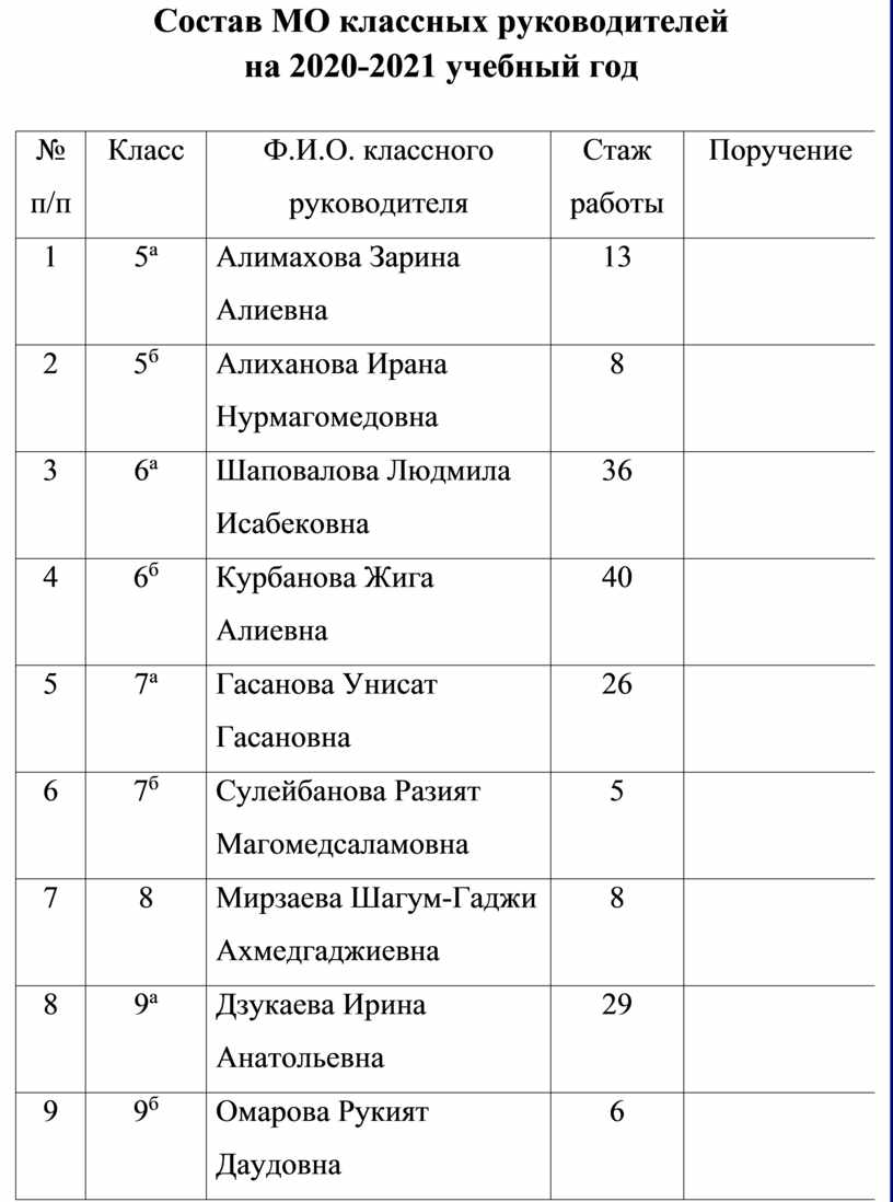 · составлять функциональные обязанности классного руководителя;