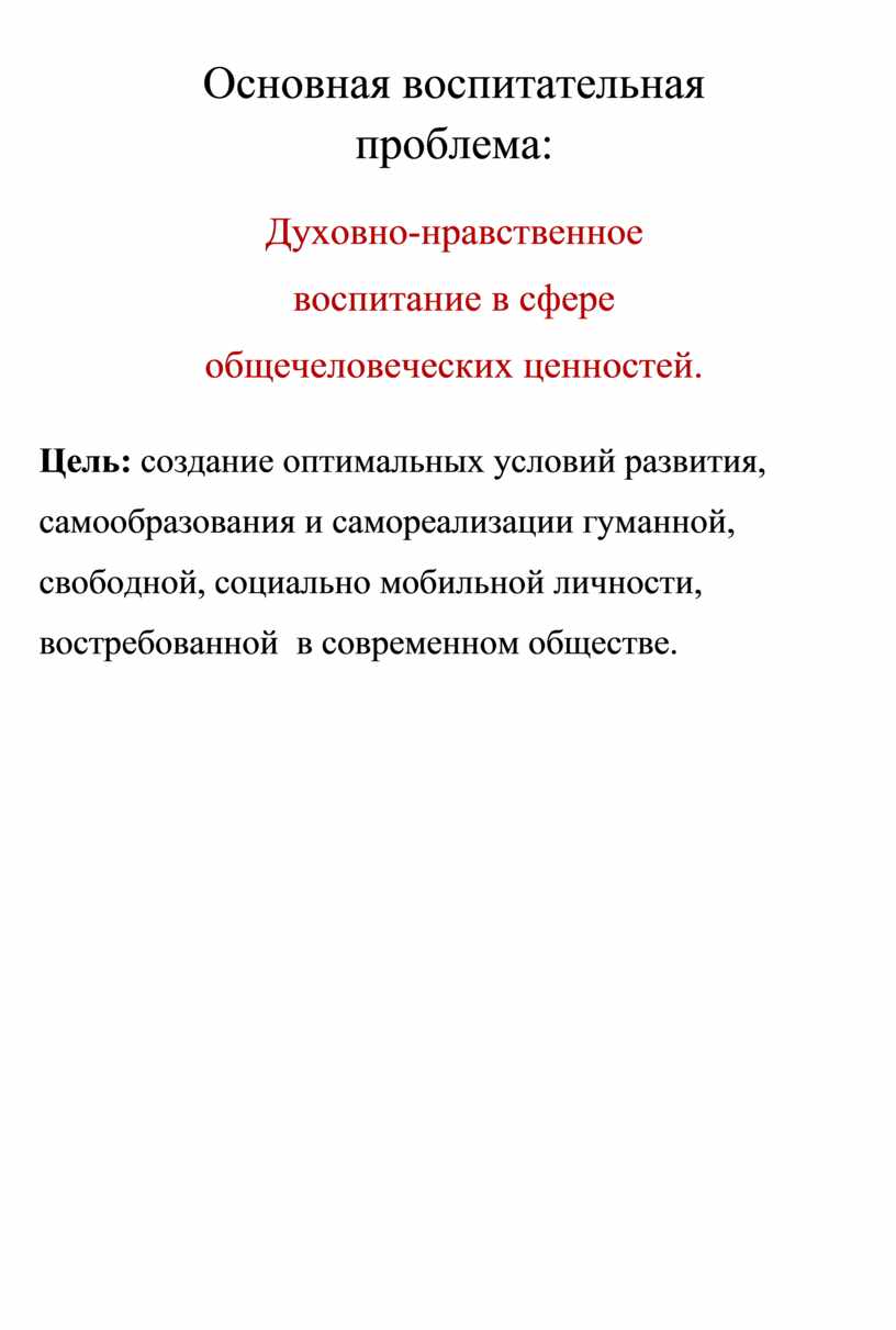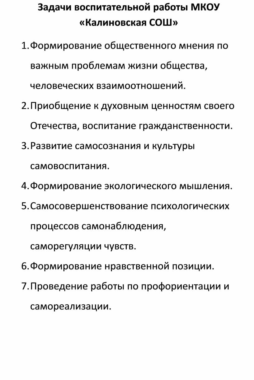 Задачи воспитательной работы МКОУ