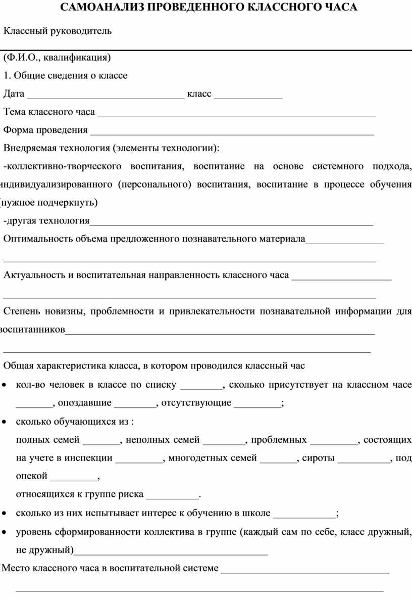 САМОАНАЛИЗ ПРОВЕДЕННОГО КЛАССНОГО ЧАСА