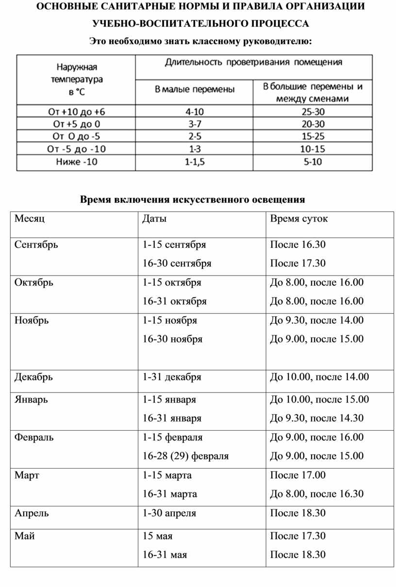 ОСНОВНЫЕ САНИТАРНЫЕ НОРМЫ И ПРАВИЛА ОРГАНИЗАЦИИ